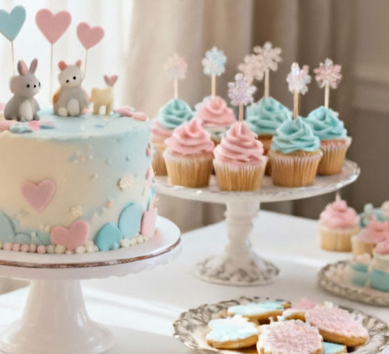 Adornos para mesa según la temática, peluches, imágenes accesorias, banderines, etc.